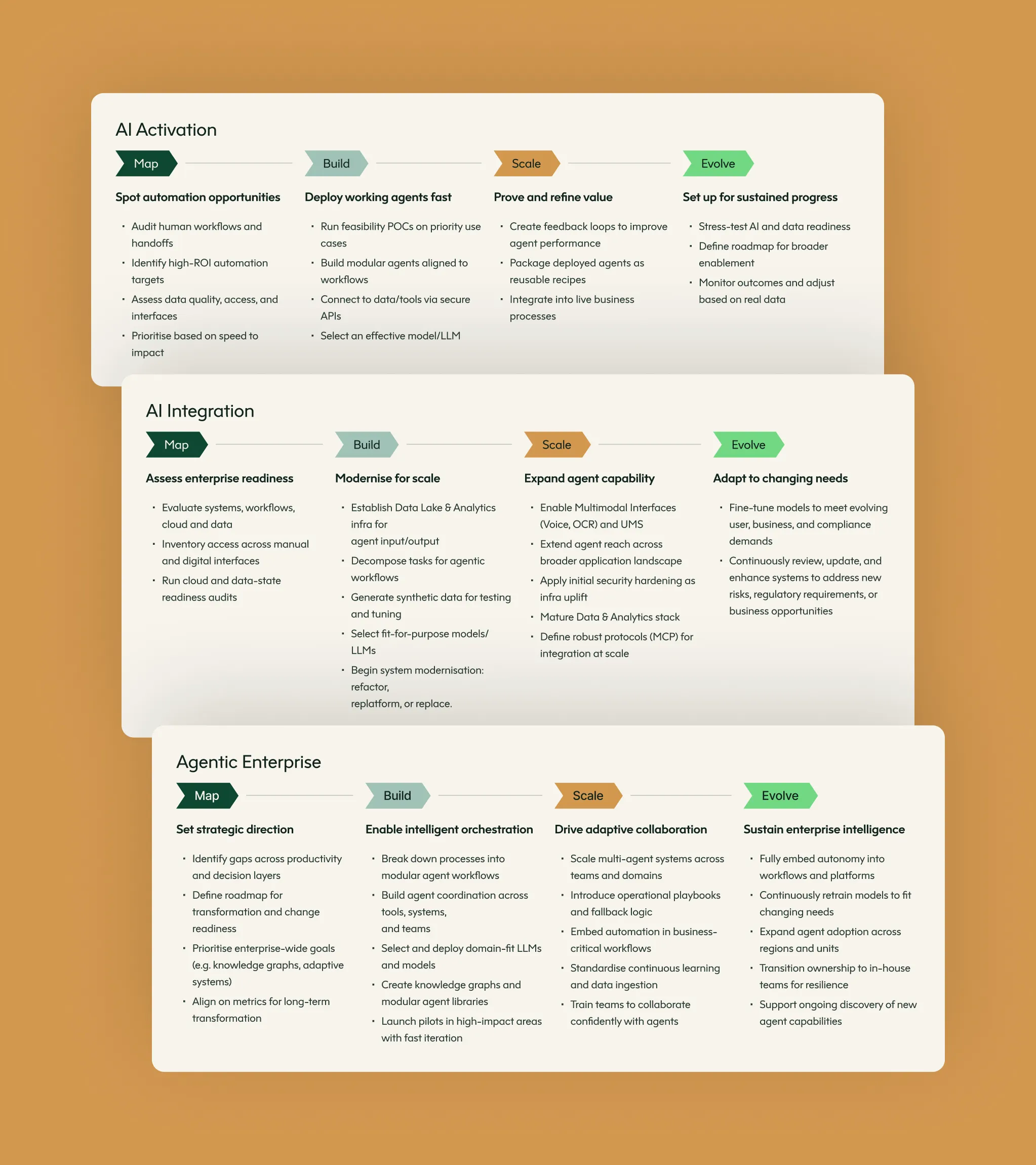 Piecemeal initiatives — Siloed pilots that fail to scale into real transformation