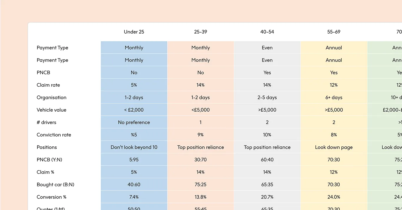 Alongside the increased risks unique to a segment like this, there comes opportunities: younger demographics put a premium on better customer experience, are often potentially overcharged for car insurance, will often opt for digital solutions over traditional methods, and generally lack the brand loyalty that incumbents enjoy from older demographics. With that in mind, we were tasked by GoCompare to explore if and how they could unlock customer segments like this one.